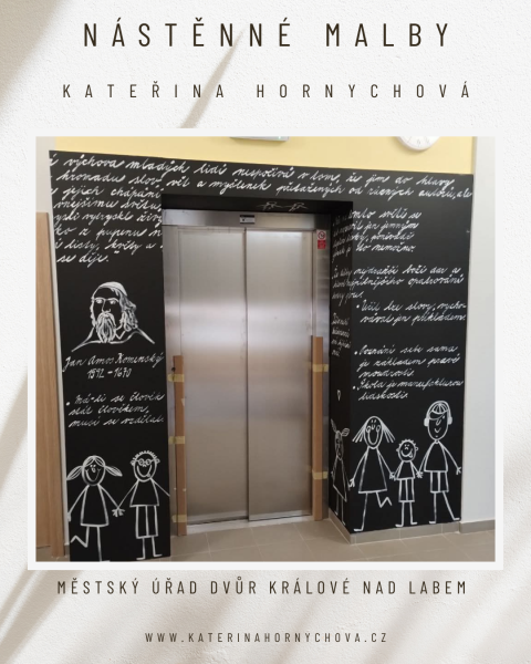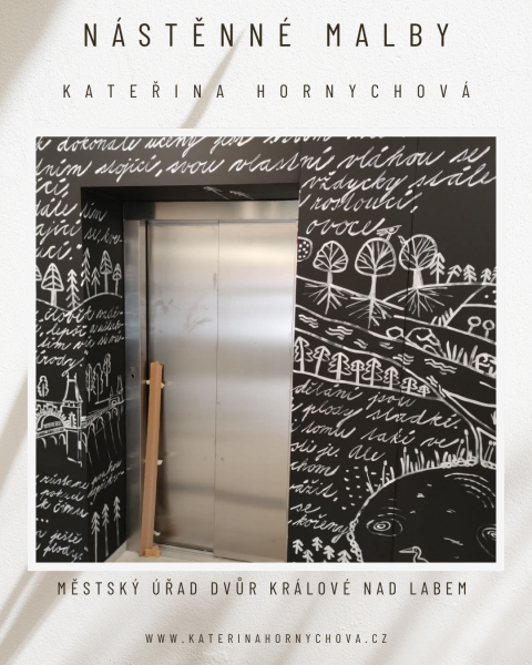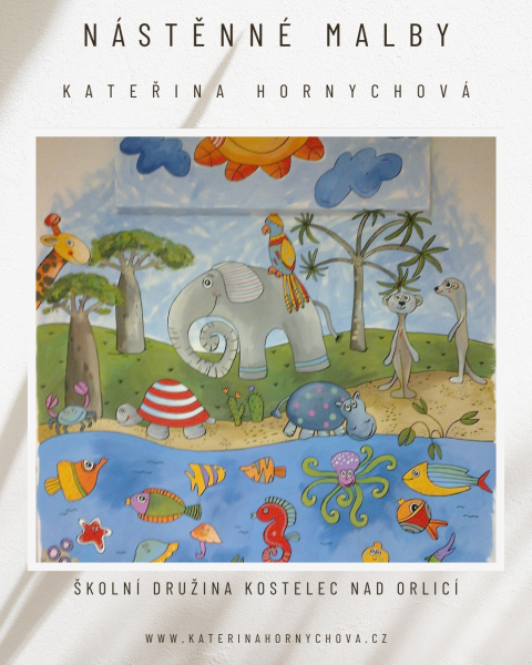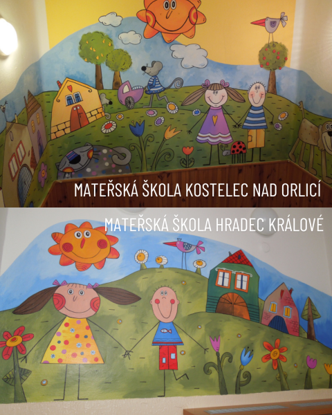 Do mých realizací nástěnných maleb patří mnoho mateřských škol (Dvůr Králové, Smiřice, Velichovky, Lanžov, Lipnice, Hradec Králové, Kostelec n. O....), knihovny (Dvůr Králové, Hradec Králové), Městský úřad Dvůr Králové, ZŠ (Dvůr Králové, Dubenec), Léčebna zrakových vad Dvůr Králové, FN Na Karlově Praha, kaple v Kostěnicích, školní družiny ve Dvoře Králové a Kostelci na Orlicí, domov pro seniory Libuše v Kratonohách, dětské pokojíčky a jiné interiéry.