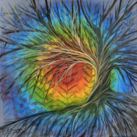 Akryl na plátně, strukturální pasta, 70x70 cm, 2025, signováno. Omalovány i hrany obrazu. Bez rámu. Lakovaný. Cena 8000 Kč.