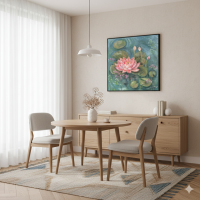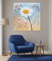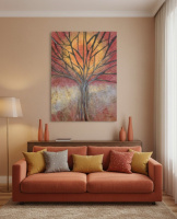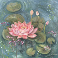 Olej na plátně 100x100 cm, 2025, signováno. Plátno na rámu, omalovány jsou i hrany obrazu. Bez rámu, lakovaný. Cena 18000 Kč.