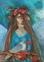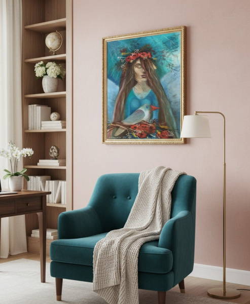 Olej na plátně, 70x50 cm, 2025, signováno. Omalovány i hrany obrazu, bez rámu, lakovaný. Cena 6000 Kč.