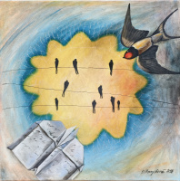 Olej na plátně, 70x70 cm, 2025, signováno. Omalovány i hrany obrazu. Bez rámu. Lakováno. Cena 12000 Kč.
