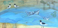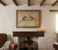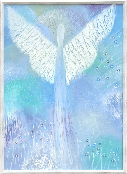 Olej na plátně, 50x70 cm, 2022, signováno. Obraz je zarámovaný v bílém rámu s patinou. Šířka rámu 2 cm. Lakovaný. Cena 8000 Kč.