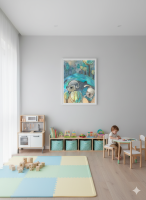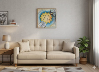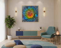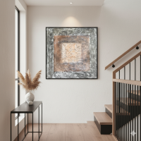 Olej na plátně, 90x90 cm, 2025, signováno. Omalovány jsou i hrany obrazu. Bez rámu. Lakováno. Cena 17000 Kč.