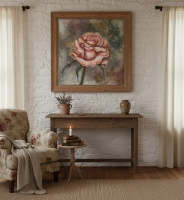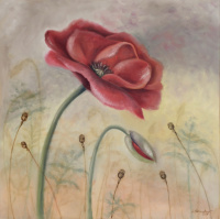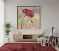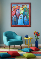 Olej na plátně 50x60 cm, signováno, 2018. Obraz má dřevěný rám v červené barvě s patinou, viz spodní foto. Šířka rámu 4 cm. Celkový rozměr obrazu 58x68 cm. Lakovaný. Cena 7000 Kč.