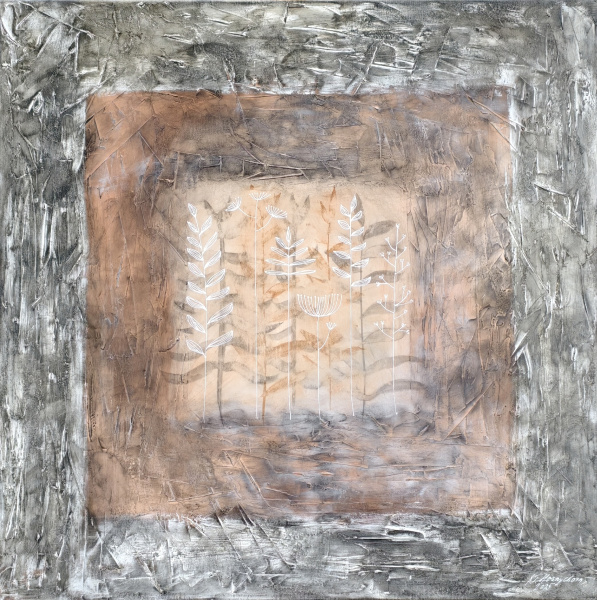 Akryl na plátně, strukturální pasta, 60x60 cm, 2025, signováno. Omalovány i hrany obrazu. Obraz je bez rámu. Lakovaný. Cena 7000 Kč.