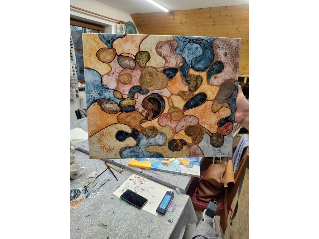 Záhada kamínku: Jak začne váš příběh? Hlavní roli v úvodu našeho tvoření hraje obyčejný kamínek. Jak ho využijeme? To zůstane malým tajemstvím až do začátku kurzu. Prozradím jen, že právě on se stane vaším intuitivním průvodcem a „vyčaruje“ na plátně první linie, ze kterých se začne rodit váš budoucí obraz. Žádné plánování, žádný stres – jen čistá přítomnost a radost z tvorby.