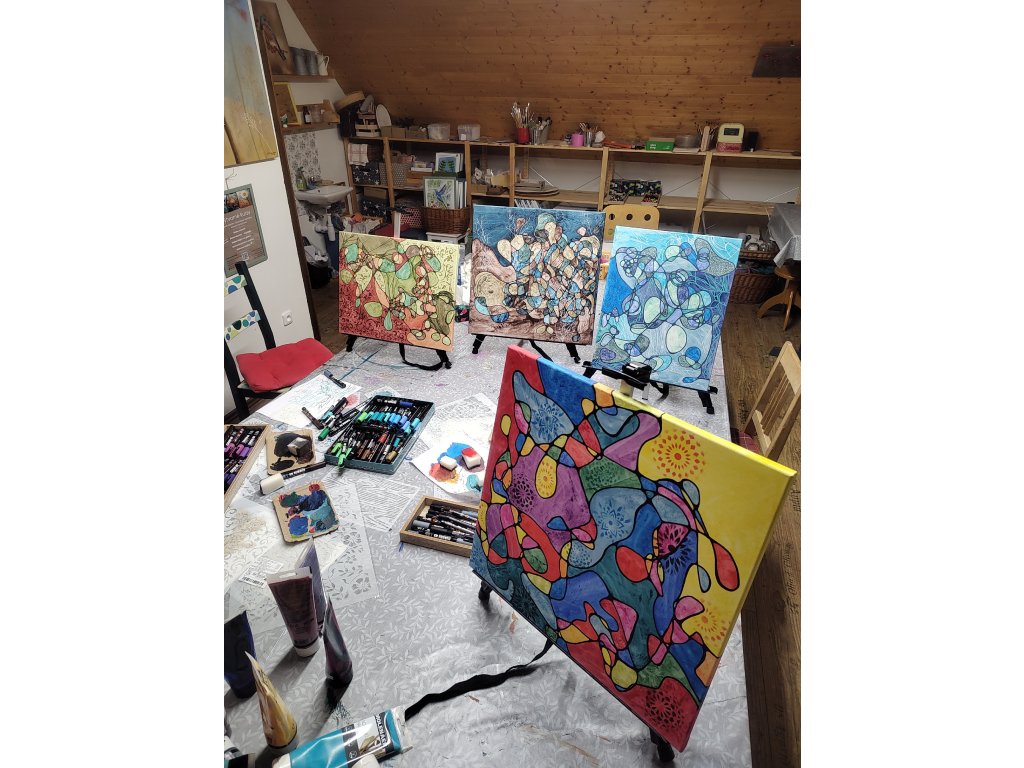 Proč zkusit intuitivní malbu? Je to jedna z nejsilnějších forem relaxace. Pomáhá uvolnit zablokované emoce, odbourává stres a vrací nám dětskou radost z objevování. V mém ateliéru najdete bezpečné a inspirativní prostředí, kde vás nikdo nebude hodnotit.