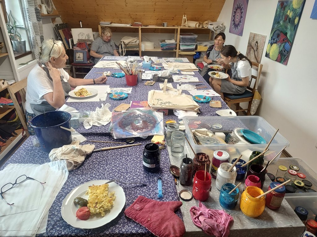 V ceně kurzu je tričko, taška a potřebné barvy a vybavení pro tvoření, občerstvení.