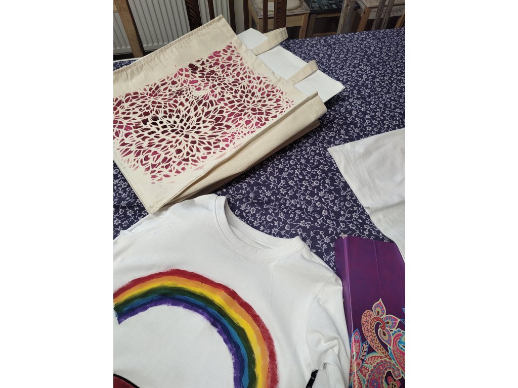 Osmihodinový kurz malby na textil kvalitními textilními barvami, odolné praní při 40 stupních Celsia.