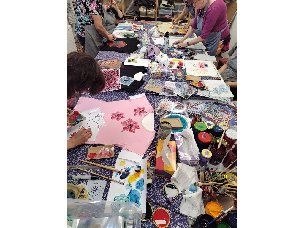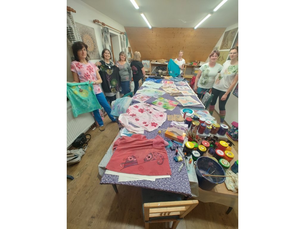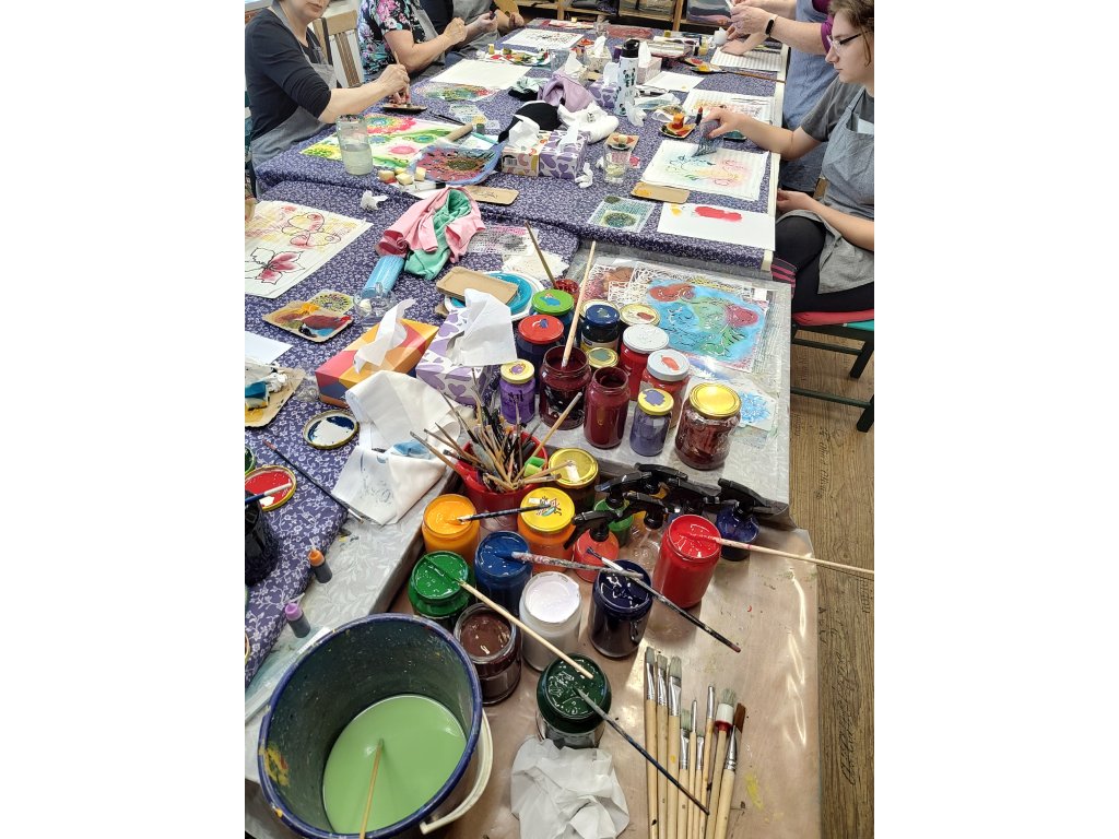 - S sebou: Přezůvky a případně oblečení z domova, které si chcete pomalovat (na tento kurz je vhodné si vzít i pracovní oblečení, barvy jsou nevypratelné).