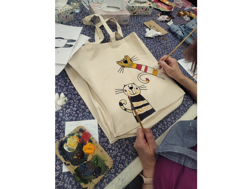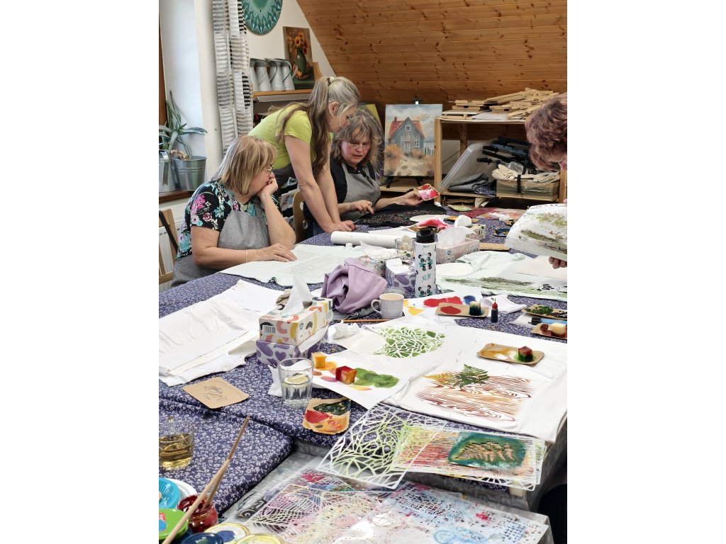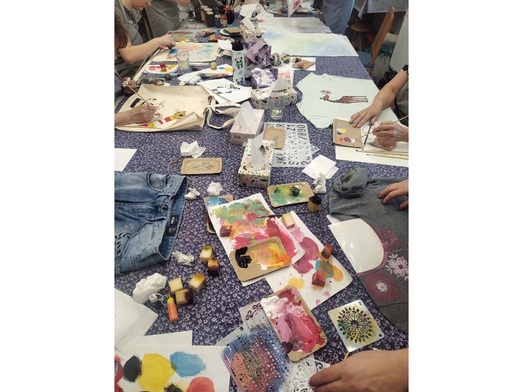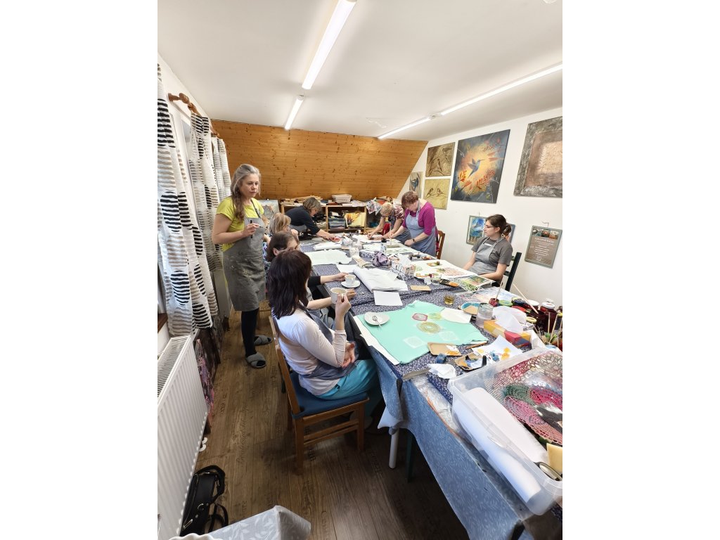 - V ceně: Tričko, velká taška, veškeré barvy a pomůcky, zástěra k zapůjčení, káva, čaj a drobné domácí pohoštění.