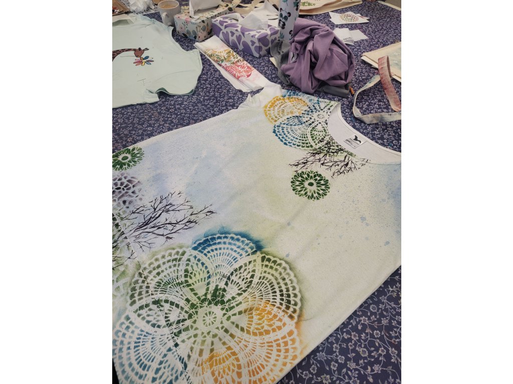 Domů si odnesete minimálně dva (a ti rychlejší i více) vlastnoručně malované kousky, které jsou po zafixování stálé a odolné při praní na 40 °C: