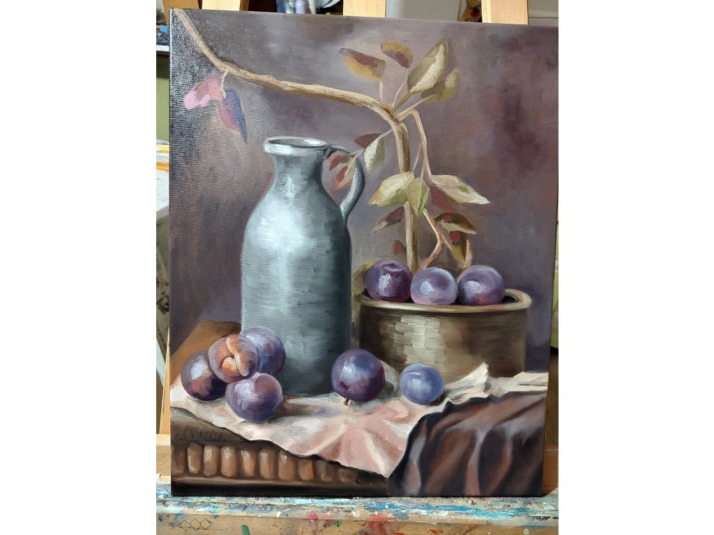 Krok za krokem budu malovat s Vámi na kvalitní šepsované malířské plátno velikosti 40 x 50 cm. Vysvětlím techniku, možnosti, míchání barev, základy práce s olejovými barvami atd. Každý malíř má své postupy, já Vás seznámím s tím svým, ke kterému jsem si došla letitým zkoušením, někdy to byl i pokus omyl a zkušenostmi, které jsem nabila na kurzech já.