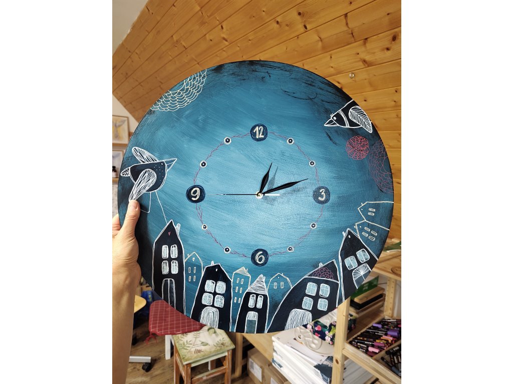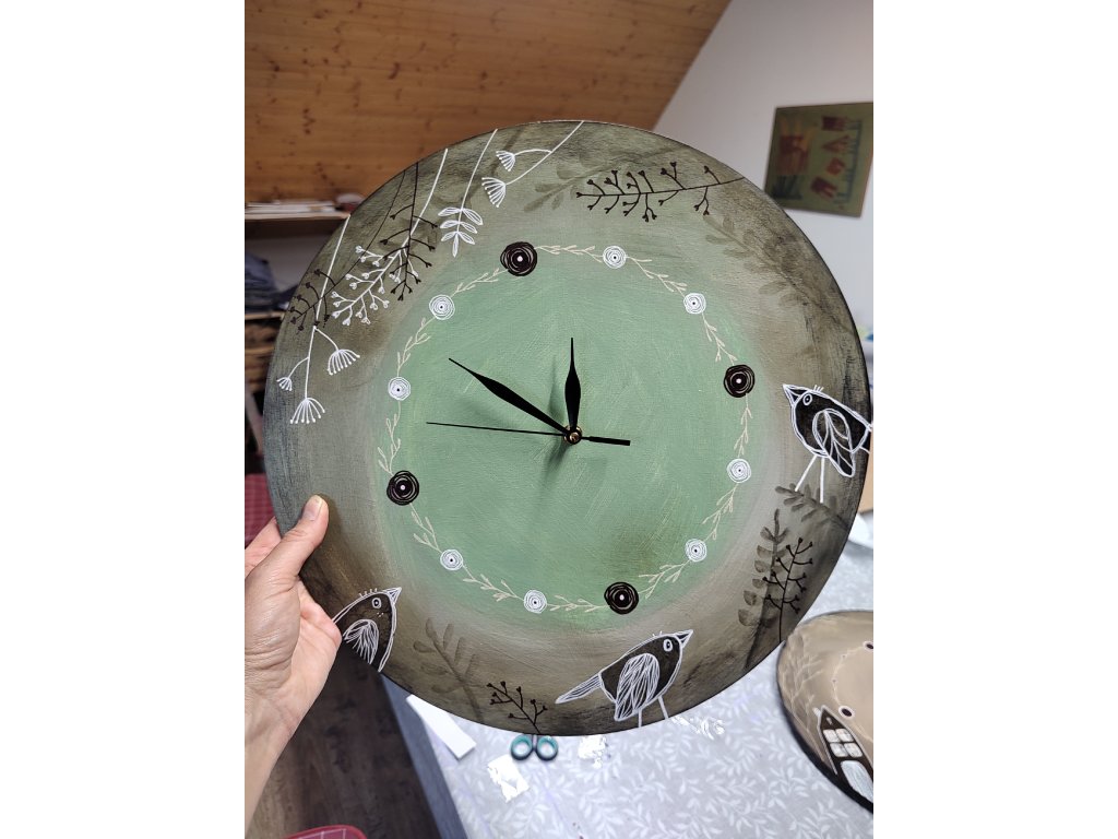Celodenní kurz MALOVANÉ HODINY. Pod mým vedením, si krok za krokem vyrobite svoje vlastní nástěnné hodiny. Všechen potřebný materiál ode mne dostanete. Velikost hodin si vyberete na místě, buď průměr 40 cm nebo 50 cm. Motiv si můžete připravit předem nebo až na místě, kde vám budu nápomocna s jeho realizací. Budeme používat barvy, různé šablony, štětce a jiné pomůcky, patinovat, brousit, lakovat, vrtat a montovat. Hodiny na konci kurzu ožijeme tichým hodinovým strojkem. Navrhnete si hodiny svoje, přímo do vašeho interiéru a stylu. Fotografie hodin slouží k inspiraci, takové, které jsem připravila já, abych vyladila pracovní postupy.