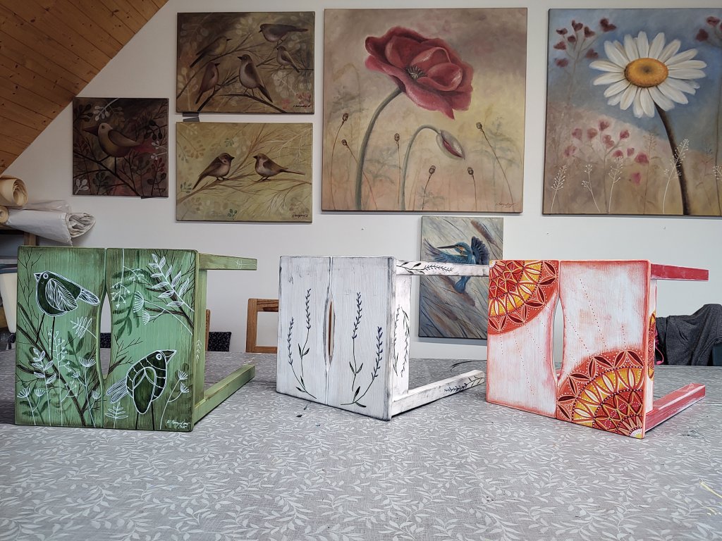 🎨 Na celodenním kurzu si u mě v ateliéru pomalujete dřevěnou stoličku. Krok za krokem vás seznámím s postupy, jak na to. Budeme nejen malovat, ale i brousit, lakovat, natírat atd. Naučím vás patinovat dřevo a jiné techniky.