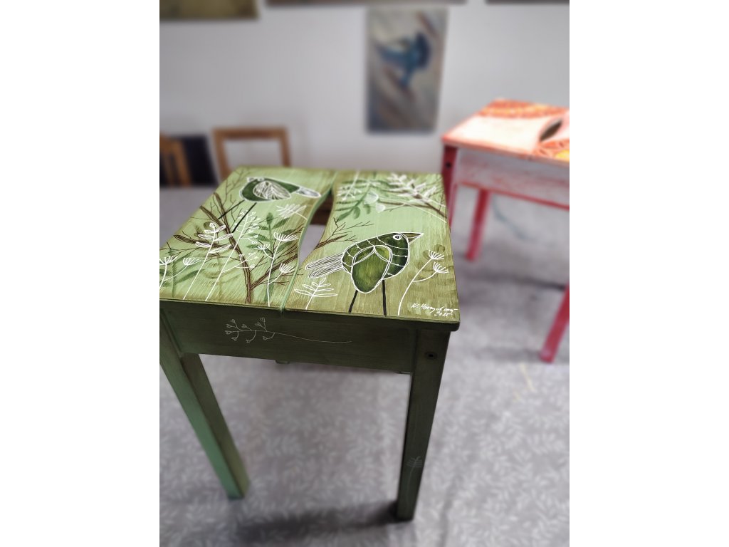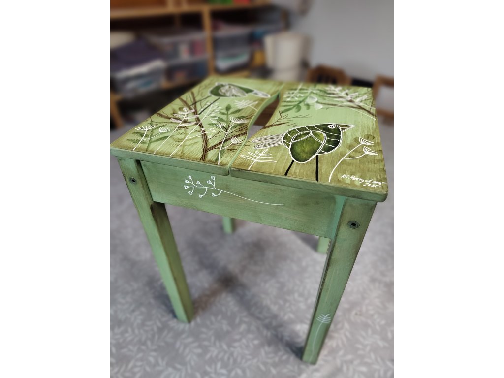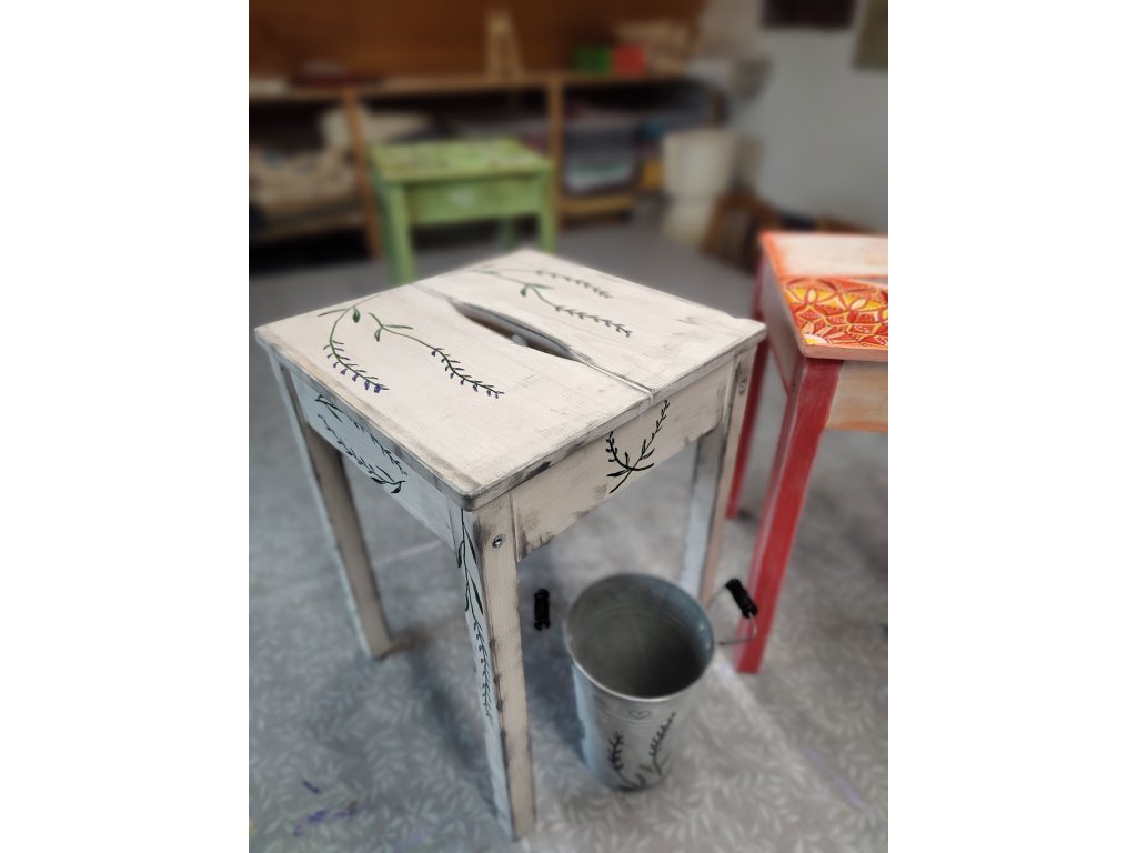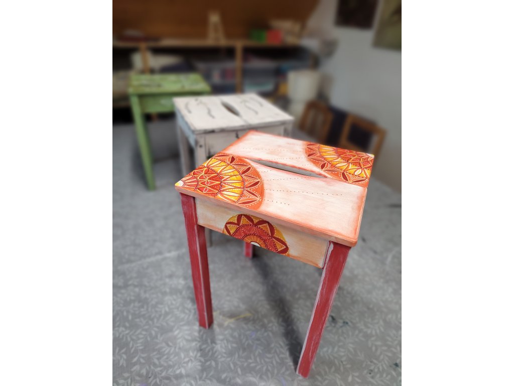 🎨 Donesete si domů interiérový doplněk dle své fantazie nebo můžete tvořit podle předloh. Stolička je z masivního dřeva a určena pro běžné používání.